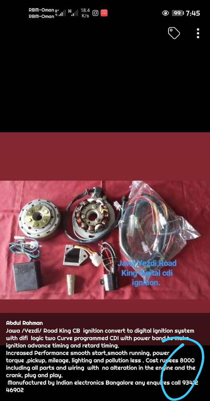We Indian electronics manufacturing roadking rajdoot yezdi Cdi ignition performance kit it make vehicles very smooth tarque milage lighting power etc...